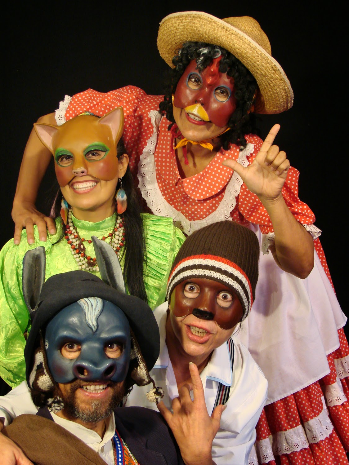 nosotros con sus máscaras y coloridos vestuarios sus audaces voces entrelazadas